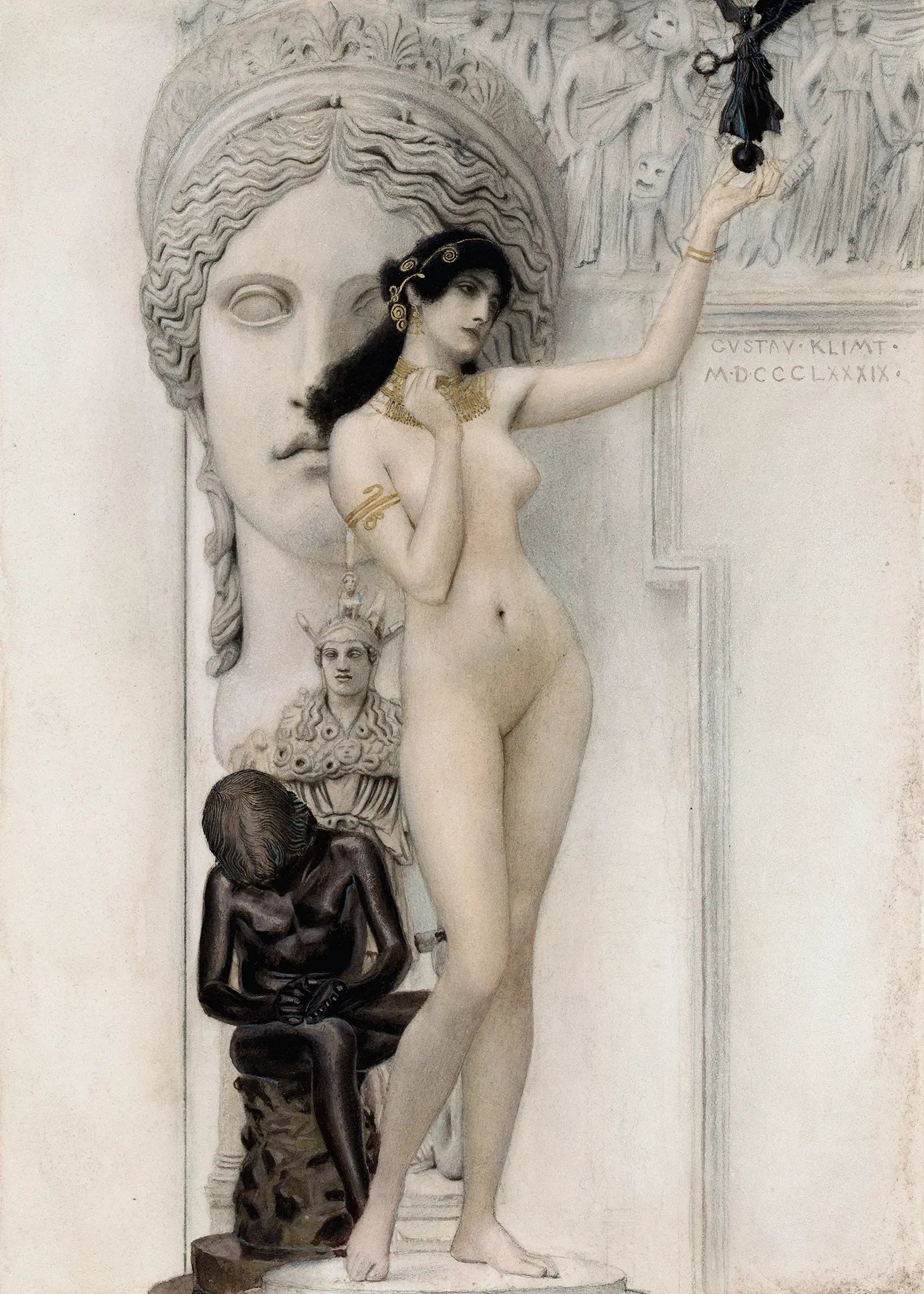 The "Allegory of Sculpture" by Gustav Klimt captures the essence of creativity and craftsmanship through symbolic imagery. Reflecting the artist's signature style, it blends flowing forms, intricate details, and an otherworldly atmosphere, epitomizing early 20th-century Viennese art.