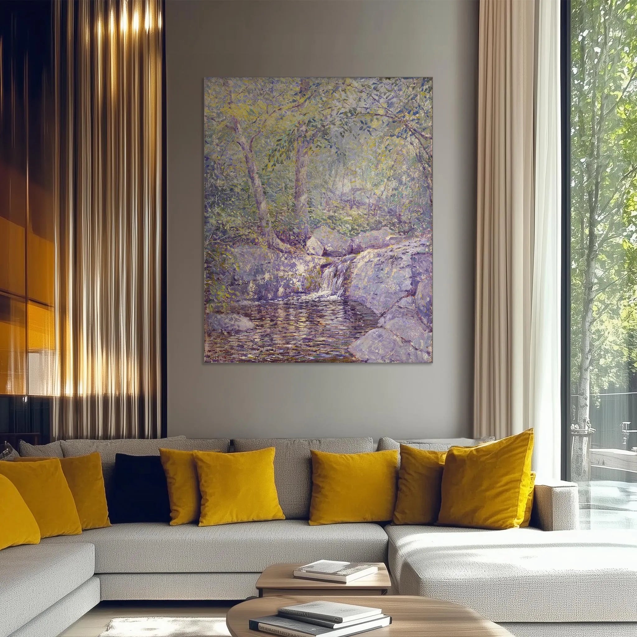 It is a museum-worthy work of art that you can display at home. Our high-quality art prints on canvas, such as ‘The Waterfall’ by Addison Thomas Millar, are mounted in a stylish aluminium frame. This allows you to easily change the canvas and adapt your interior to your mood or season. With Artuoso, you bring the most famous and emerging works of art into your home, which guarantees quality and rich storytelling.