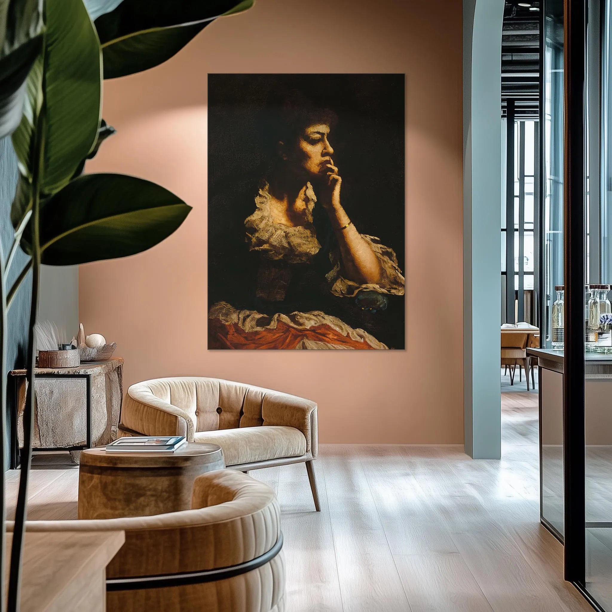 It is a museum-worthy work of art that you can display at home. Our high-quality art prints on canvas, such as ‘Portrait of Mrs. Eastman Johnson’ by Eastman Johnson, are mounted in a stylish aluminium frame. This allows you to easily change the canvas and adapt your interior to your mood or season. With Artuoso, you bring the most famous and emerging works of art into your home, which guarantees quality and rich storytelling.